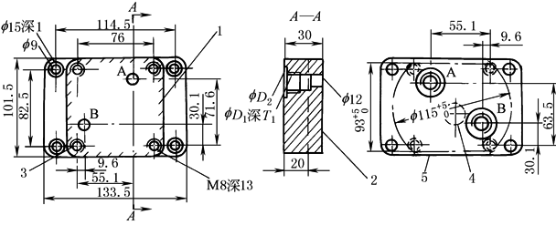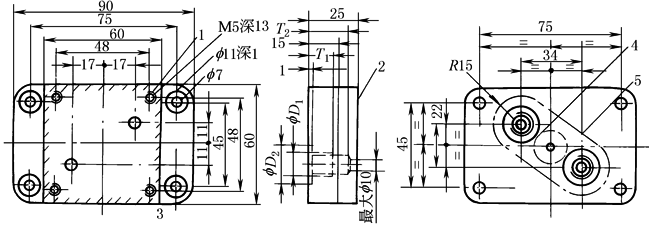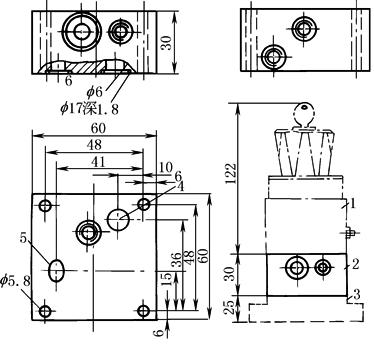 1—安装面 2—底面 3—安装孔 4—对通径5、10,在20范围内不得有孔;对通径16,在30范围内不得有孔 5—与阀连接的切口轮廓 |