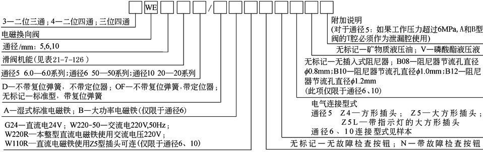 注:1.生产厂为北京华德液压集团液压阀分公司、上海立新液压公司、上海朝田科技有限公司、海门市液压件厂。 2.北京华德液压集团液压阀分公司还生产通径4mm的WE4型电磁换向阀,详见生产厂产品样本。 |