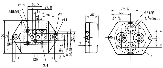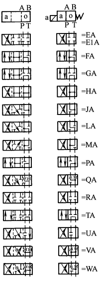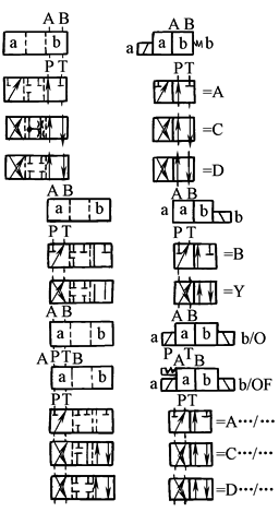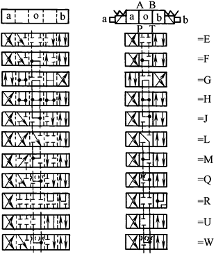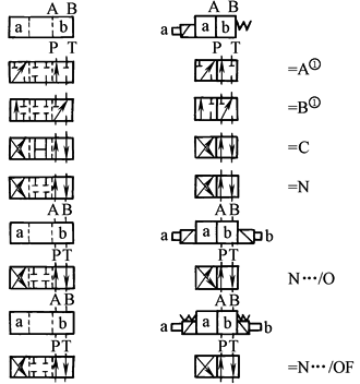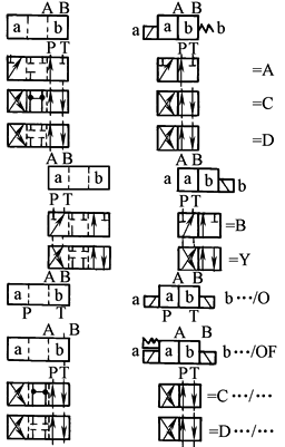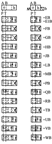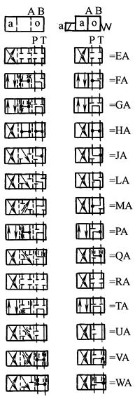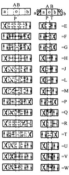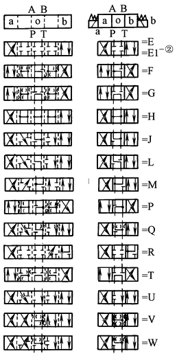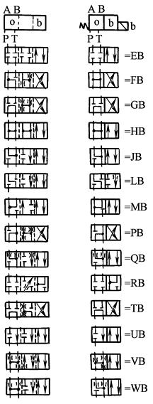 7—R型机能在工作位置AB 8—G型机能在中间位置PT