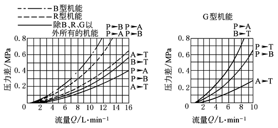 压力级/MPa 流量/L·min-1 滑阀机能 |