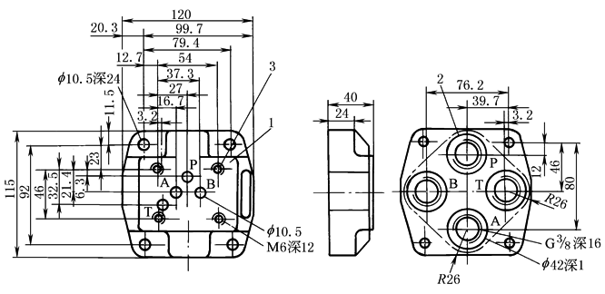 1—阀的连接面; 2—固定连接板的加工轮廓; 3—阀的安装螺孔 |
