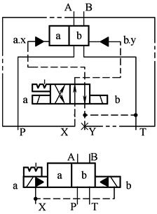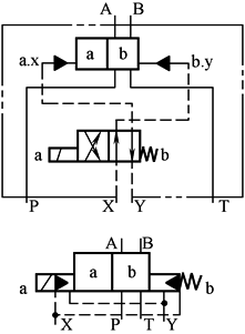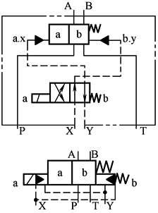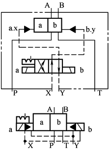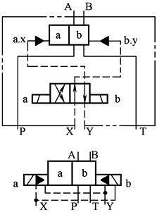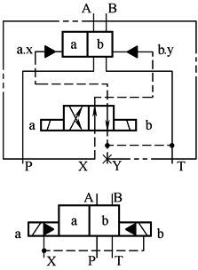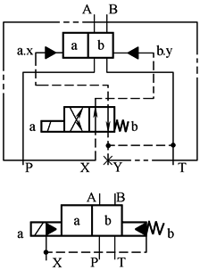 控制油内排(液压对中的三位阀,当控制油内排时不可能) |