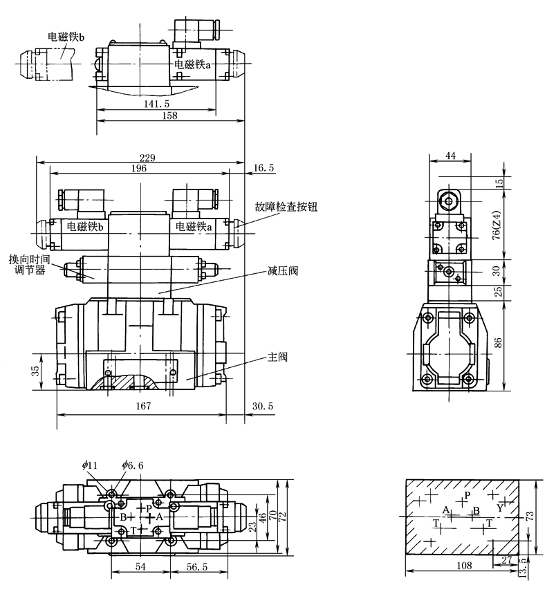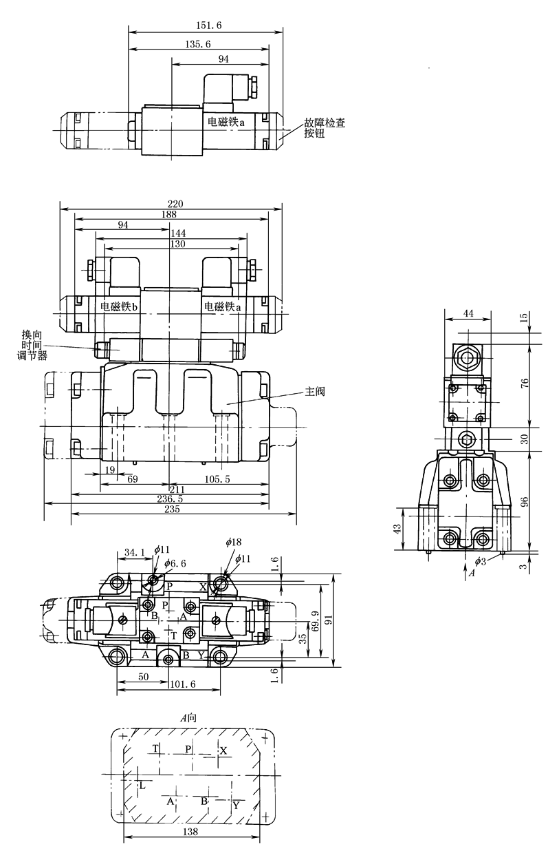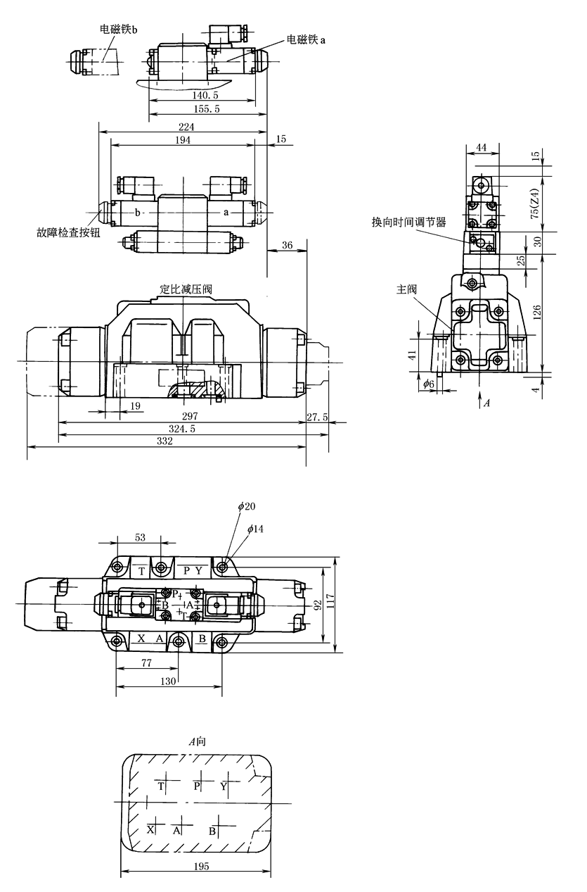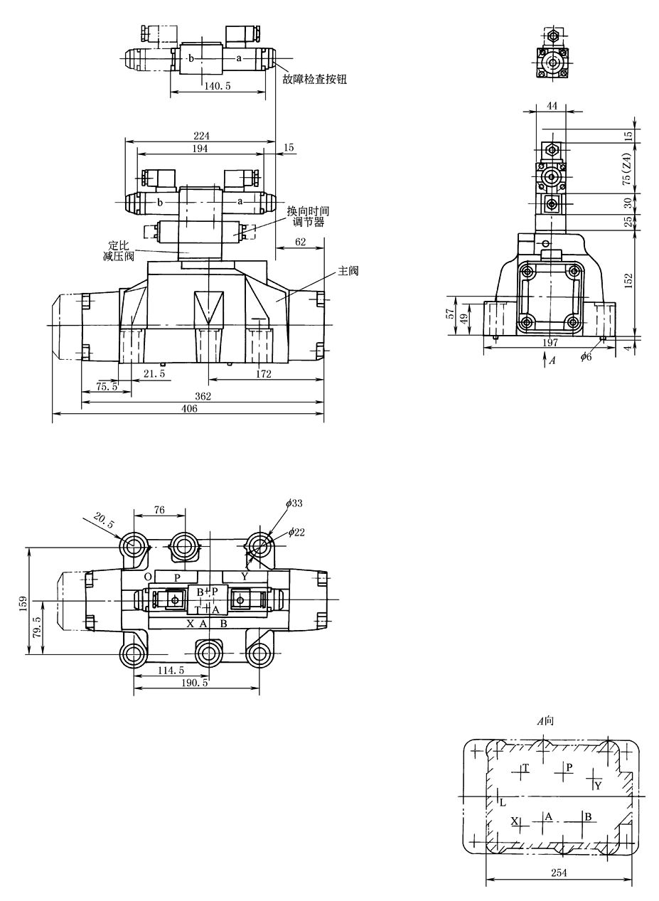 除C、D、K、Z、Y型液压复位的阀水平安装外,其余任意安装 |