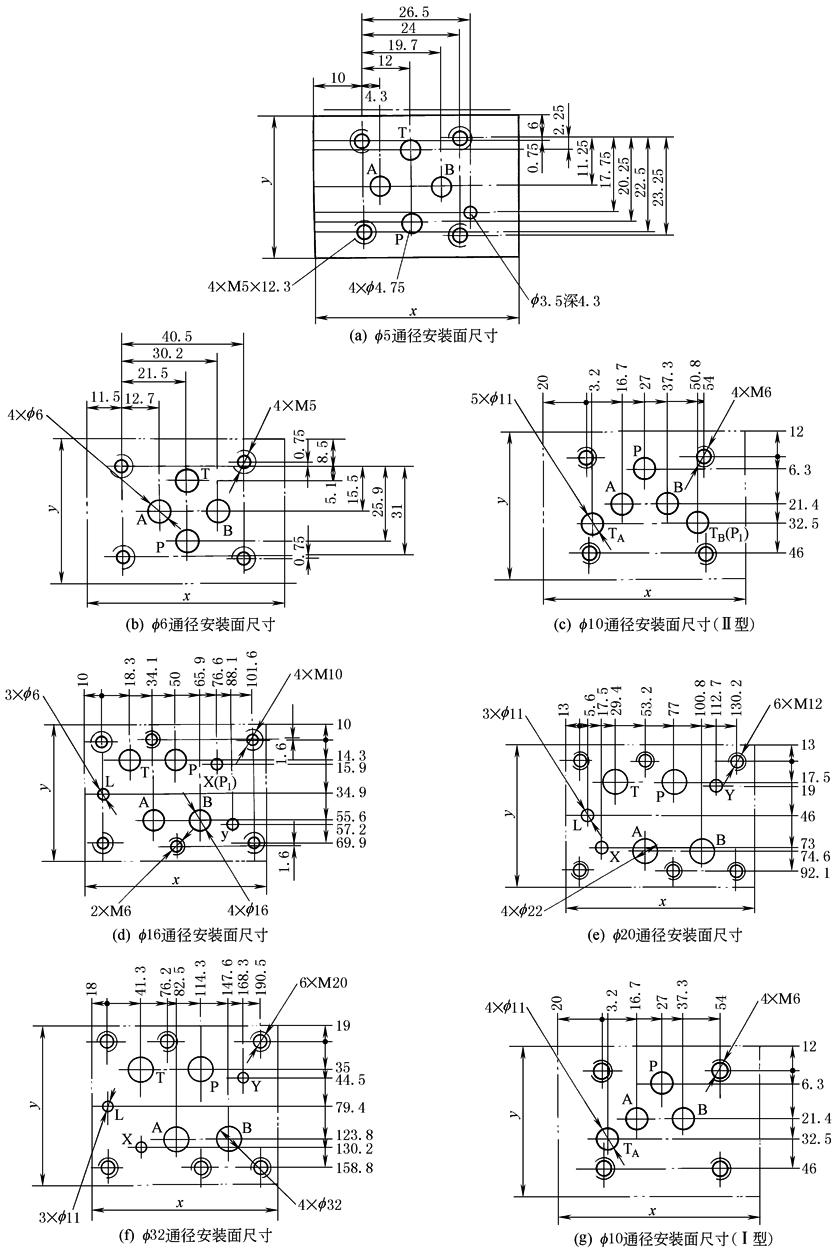 液压叠加阀安装面连接尺寸应符合GB/T8099和ISO4401标准,见下表