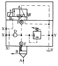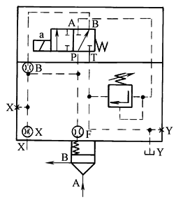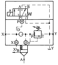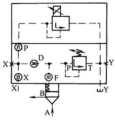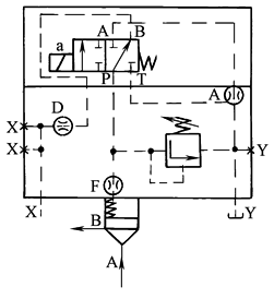 图2 LFA型控制盖板及插装阀图形符号(溢流) |