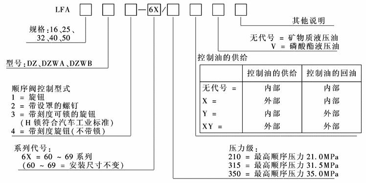 图6 LFA控制盖板功能符合(顺序) 3) 外形尺寸 L型压力控制二通插装阀外形尺寸见生产厂产品样本。 |