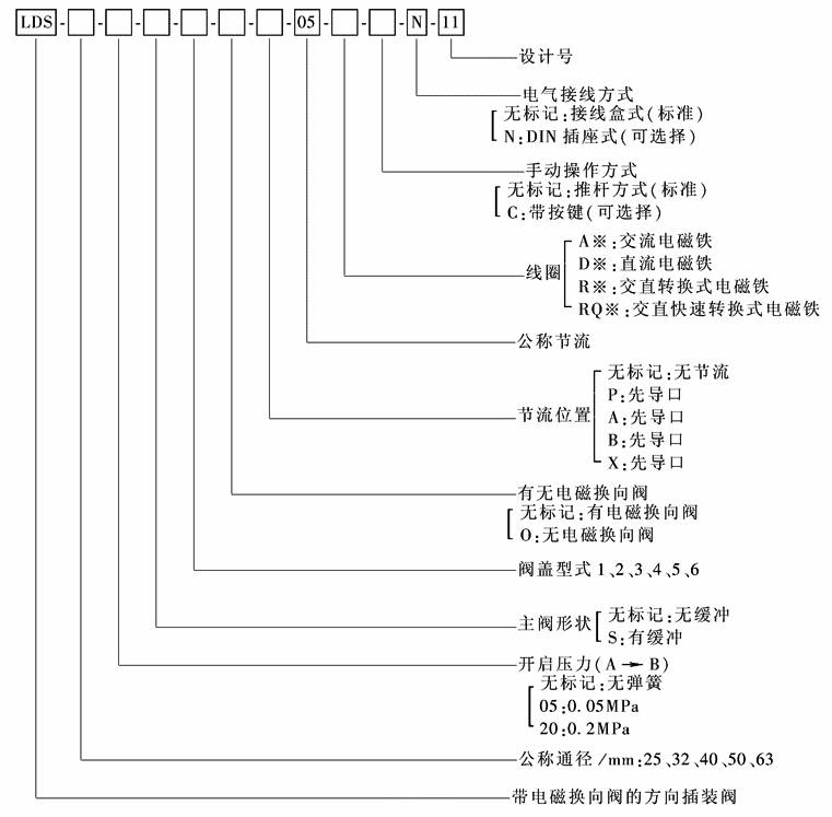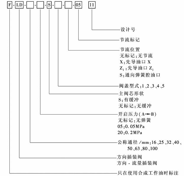 (1) LD型方向插装阀、方向-流量插装阀 型号意义:
