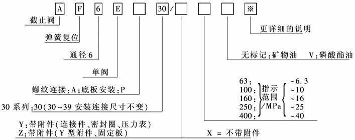 压力表开关是小型截止阀或节流阀。主要用于切断油路与压力表的连接,或者调节其开口大小起阻尼作用,减缓压力表急剧抖动,防止损坏 型号意义: