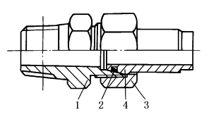锥密封焊接式管接头结构 1—接头体;2—O形密封圈;3—螺母;4—接管 |