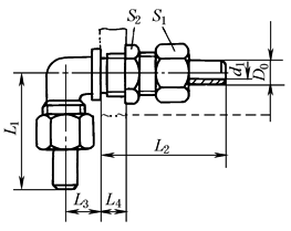 公称压力:≤16MPa 圆锥管螺纹 JB/T 6382.3 圆锥螺纹 JB/T 6382.4 标记示例: 管子外径D020mm为锥密封焊接式圆锥管螺纹90°弯管接头: 管接头20 JB/T 6382.3 |