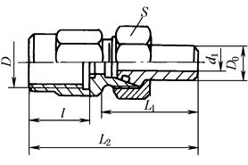 公称压力:≤31.5MPa 标记示例 管子外径D020mm的锥密封两端焊接式直通管接头: 管接头20 JB/T 6383.1—2007 |