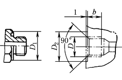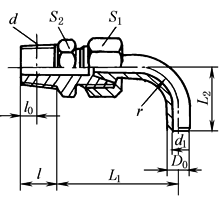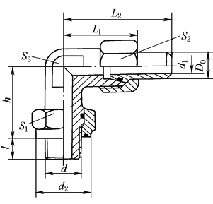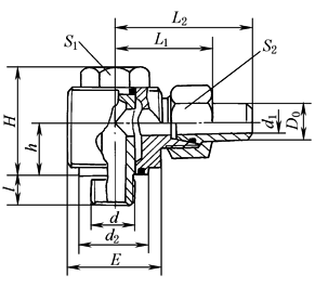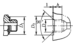公称压力≤31.5MPa 标记示例 管子外径D020mm的锥密封焊接式直角管接头: 管接头20 JB/T 6383.2—2007 |