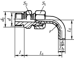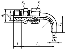 标记示例 管子外径D020mm的锥密封焊接式90°弯管接头: 管接头20 JB/T 6382.1 公称压力小于等于25MPa,JB/T 6382.2中无管子外径D0=8-栏尺寸 |