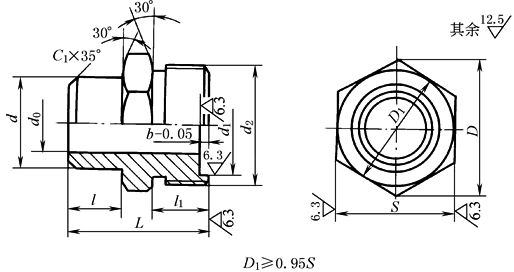 标记示例 管子外径28mm的直通管接头体:接头体 28 JB/T 988—2005 mm |