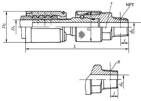 标记示例 公称通径DN为15mm的B型55°锥管螺纹快换接头:快换接头 B15(R) JB/ZQ 4079—1997 表2 mm |