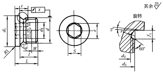 标记示例 d=M20×1.5的内六角螺塞:螺塞M20×1.5 JB/ZQ 4444—1997 d=G3/8A的内六角螺塞:螺塞G3/8A JB/ZQ 4444—1997 mm |