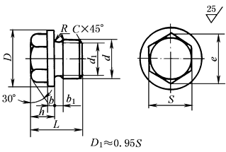 外六角螺塞(摘自JB/ZQ 4450—1997) 管螺纹外六角螺塞(PN=16MPa)(摘自JB/ZQ 4451—1997) mm |
