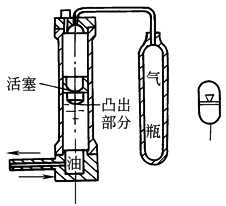 活塞下行,其凸出部分封住出油孔后,气腔压力要低于活塞下环形腔压力,因此气体不会进入液压系统 |