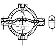 与普通活塞式蓄能器不同之处是有两个活塞,能防止空气渗入油中,而且可以通一般压缩空气使液压工作压力提高数倍 |
