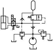 停电时,二位四通阀右位接入,蓄能器放出油量经单向阀进入油缸有杆腔,使活塞杆缩回,达到安全目的 |