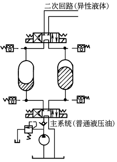 蓄能器内的隔离件(隔膜、气囊式活塞)在液压油作用下往复运动,输送被隔开的异性液体。常将蓄能器装于不允许直接接触工作介质的压力表(或调节装置)和管路之间 |