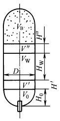 (5)罐底死容积V0 一般近似取相当于罐底弧面部分的容积 (6)液罐中液体总容积V液 V液=VW+V′+V″+V0 (7)液罐总容积Vt Vt=V液+VB |