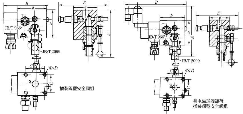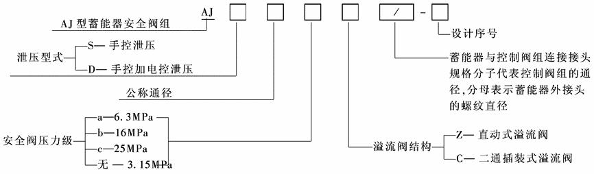 标记示例: 公称通径20mm,手控泄压,安全阀开启压力16MPa,二通插装阀式溢流阀,接头规格为DN20/M42×2:AJS20bc20/M42×2-20 |