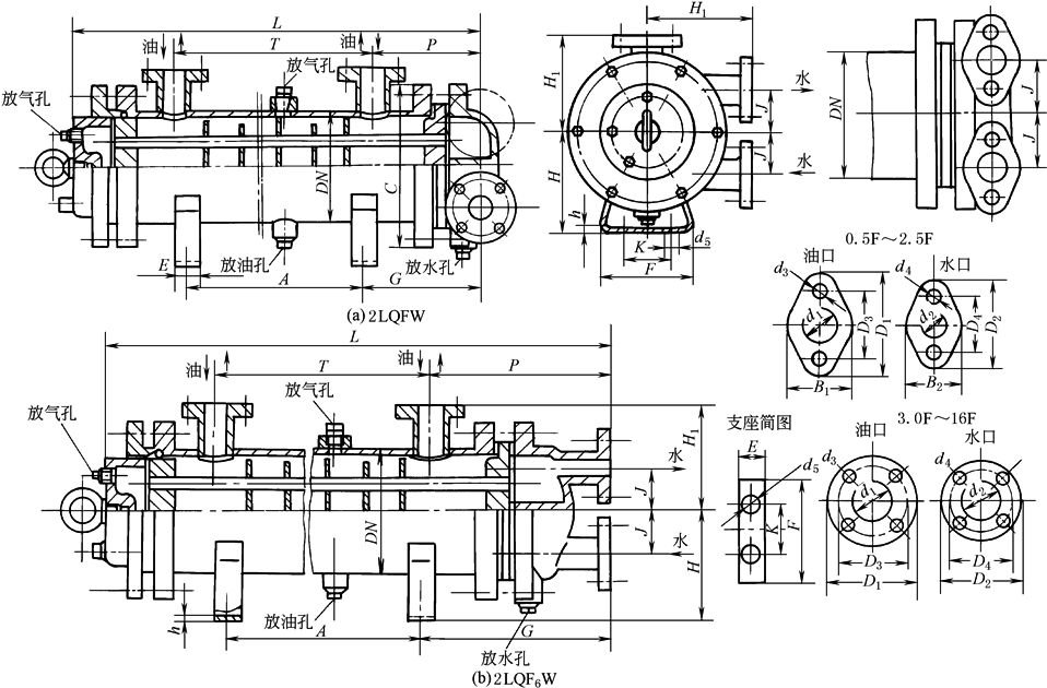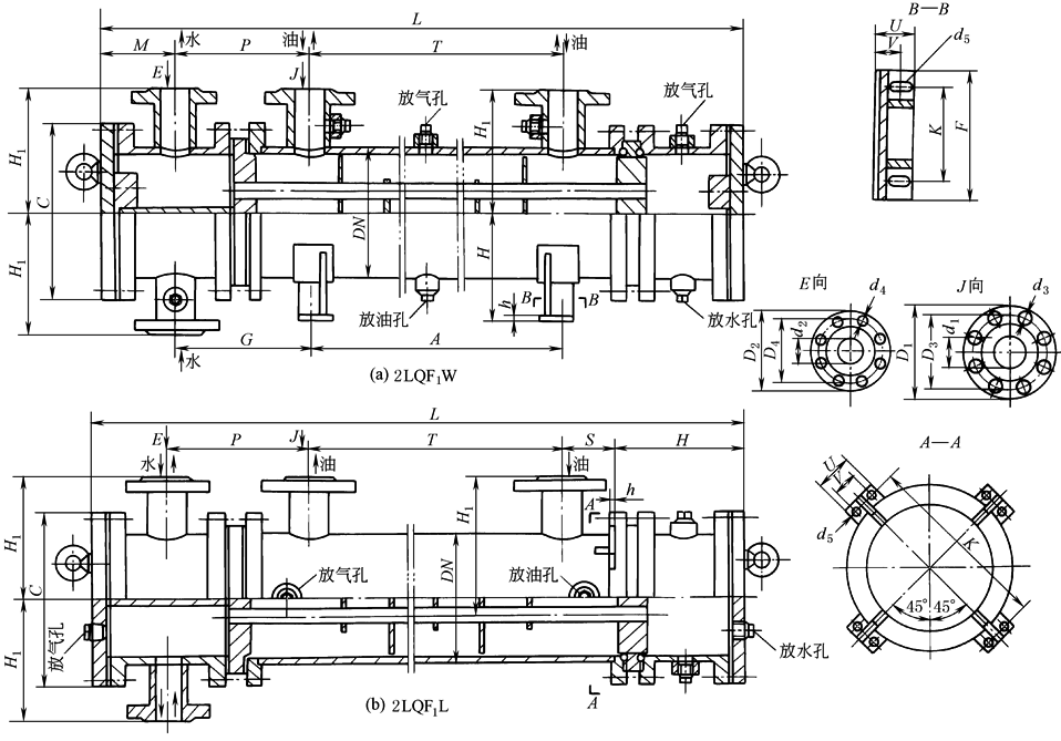 ① 卧式浮头式冷却器 2LQFW型、2LQF6W型冷却器尺寸