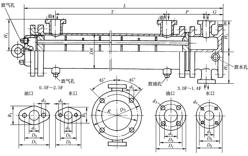 ② 立式浮头式冷却器 2LQFL型立式冷却器尺寸 |