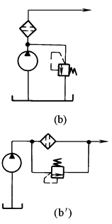 保护除液压泵以外的其他液压元件。要求滤芯及壳体耐高压,装在溢流阀之后(b图)或与安全阀并联(b′图),安全阀的开启压力应略低于过滤器的最大允许压力差;有时装堵塞指示器。过滤器允许有较大压力降(不超过0.35MPa) |