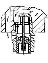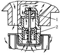 (b)单向过滤器,油液正向流动 1—回油阀;2—滤芯 |