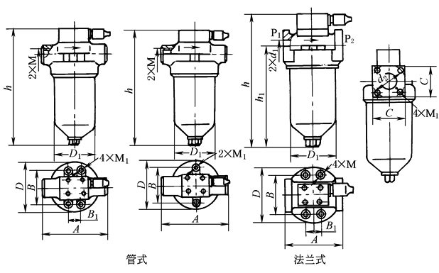 高压管式(法兰式)纸质过滤器技术性能及外形尺寸 |