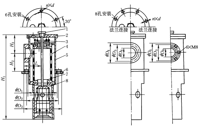 注:出油口法兰所需管子直径为Q。 |