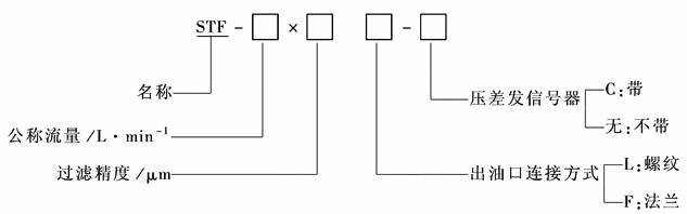 STF型过滤器由两只单筒过滤器和换向阀组成,可在系统不停机状态下更换或清洗滤芯。该滤油器配有压差发信号器、旁路阀和自封阀 型号意义: