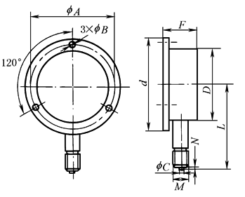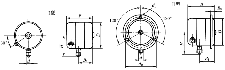 表2 一般压力表外形尺寸 mm |