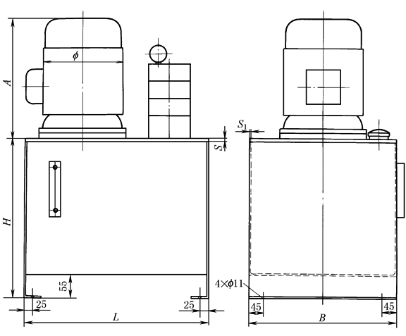 标记示例优瑞纳斯微型液压站,额定压力10MPa,齿轮泵,额定流量36L/min、电动机功率7.5kW,油箱容积225L: UZ10C36/7.5×225 (2) 技术规格 |