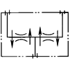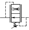 单个四通阀基本型回路。本回路是在10回路基础上,在插装阀块上增加了一个板式换向阀座孔。可将板式阀直接安装在阀块侧面上。因此本回路必须加装一个板式换向阀,才能使用。本回路常用于工作时间短,停止时间长,电机断续运转的工况。如需要电机长时间连续运转时,必须选用中立位置PT口接通的M型、H型等三位四通换向阀。这几种换向阀在中立位置时,使电机转动时不带负载,压力介质直接回油箱,不会造成系统的发热和能源的浪费。本回路常用于双作用液压缸。电机启动,换向阀换向后,压力介质从P口经换向阀进入液压缸A腔。B腔的压力介质经T口回油箱。换向阀换向后,压力介质进入B腔,A腔介质回油箱,实现液压缸的往复运动。如果需要,还可以在阀块上叠加、插装、串联各种功能的阀,组成各种扩展液压回路 |