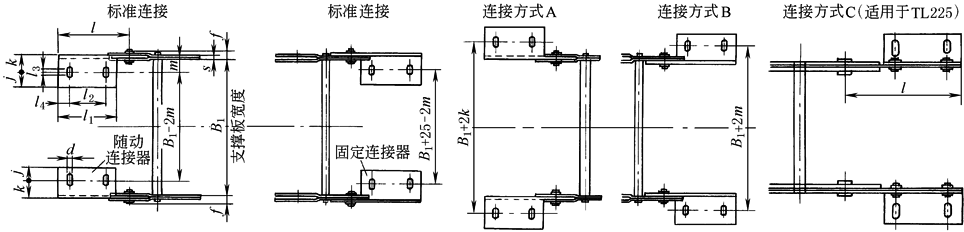 注:1.当拖链需要的弯曲半径与表列不同或结构有特殊要求时,可与生产厂协商。 2.当拖链超过允许的最大宽度Bmax时,可采用由三条链带平行组成的复合拖链,见下图1。 3.Ls为工作机械移动行程。 4.生产厂为上海英特尔弗莱克斯拖链有限公司(上海江川机件厂)、武汉南星冶金设备备件有限公司等。 |