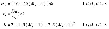 式中 ωc——开环对数幅频特性的穿越频率(亦称增益交界频率); Mr——闭环频率特性的谐振峰值 当系统的谐振频率ωr和穿越频率ωc相差较小时,系统的谐振峰值Mr和相位裕量γ之间有以下的近似关系