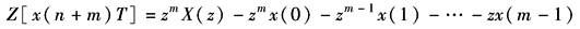 用Z变换求解差分方程与用拉普拉斯变换解微分方程一样,是非常有用的,其实质是利用Z变换将差分方程转化为代数方程。由Z变换的性质知,x[(n+m)T]的Z变换式为