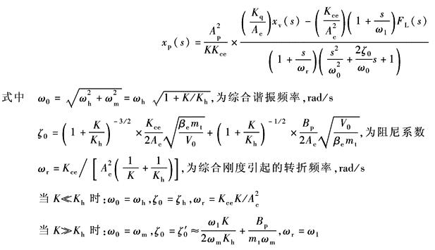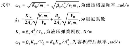 与四通阀控制对称缸相比,液压谐振频率ωh为四通阀的1/ |
