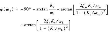 (1)已知ωi、ωsv、ωh及其阻尼值,并已确定开环增益Kv时,可由波德图中的相角稳定裕量γ(ωc)来评价系统的相对稳定性 一般要求γ(ωc)=30°~60°,具体值视系统要求而定 (2)已知ωi、ωsv、ωh及其阻尼值及要求的γ(ωc),则可由下式计算出允许的开环增益γ(ωc)=180°+φ(ωc)