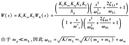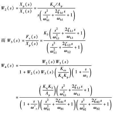 图b中W2(s)相当于不存在弹性负载的阀控缸以Xv为输入,以Xp为输出的传递函数,可直接引用表传递函数及其简化中K=0的结论: