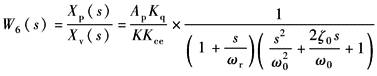 图中W6(s)系以Xv(s)为输入,Xp(s)为输出的具有弹簧负载的阀控动力元件的传递函数。可直接引用表传递函数及其简化中结果,即