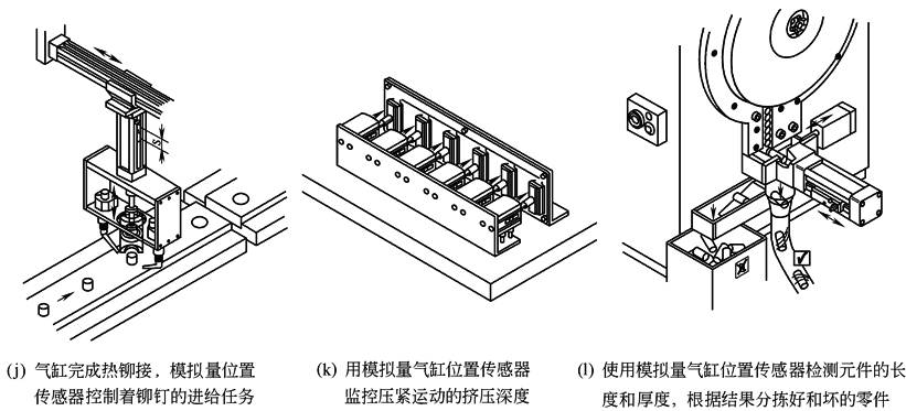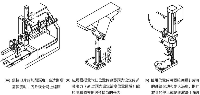 很多典型的应用场合(如连接过程、夹紧、位置感测、好/坏零件的检测、工作位置、质量检测、磨损监控、厚度感测),需对目标检测和对过程监控,见图j~图o