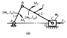 Fi、Mi—— 作用在原机构上的第i个力、力矩; mi、Jci—— 原机构中第i个构件的质量、对其质心的转动惯量; υi、ωi—— Fi力作用点的速度,Mi作用所在构件的角速度; υci—— 第i个构件质心的速度 |