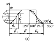 参考表基本运动规律的参数曲线,在图中每隔5°左右取一个θ值,求出相应φ;图示当θ=θn时的φ=φn |