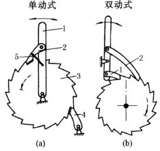 棘轮机构用于将摇杆的周期性摆动转换为棘轮的单向间歇转动,也常作为防逆转装置。 |
