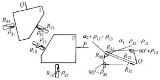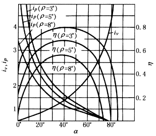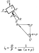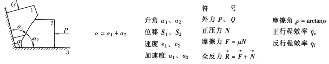 斜面机构的特性指标与计算公式见下表。三构件斜面机构特性线见下图: |