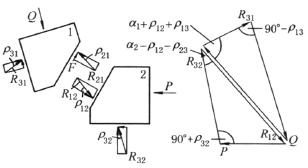 斜面机构是只含有平面移动副的平面机构。它将一个移动转变成另一个移动。其特点是:速比大、省力、能自锁、效率低。一般有斜面微动机构(实现微小移动)和斜面夹紧机构(产生较大的夹紧力) |